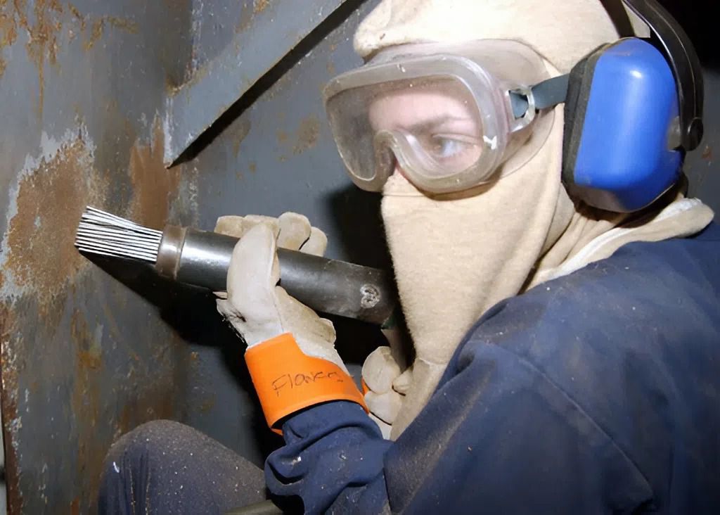 The danger of a needle scaler does not lie in the device itself but in the factors involved during operation. During scaling, rust particles and metal fragments can easily fly off. Anyone who has had iron dust in their eye will understand how uncomfortable and troublesome it is to handle. In addition, piercing noise and prolonged strong vibration can cause fatigue, hearing loss, or affect the wrist if there is no protective measure. These are silent effects, only noticeable after several months of continuous use.