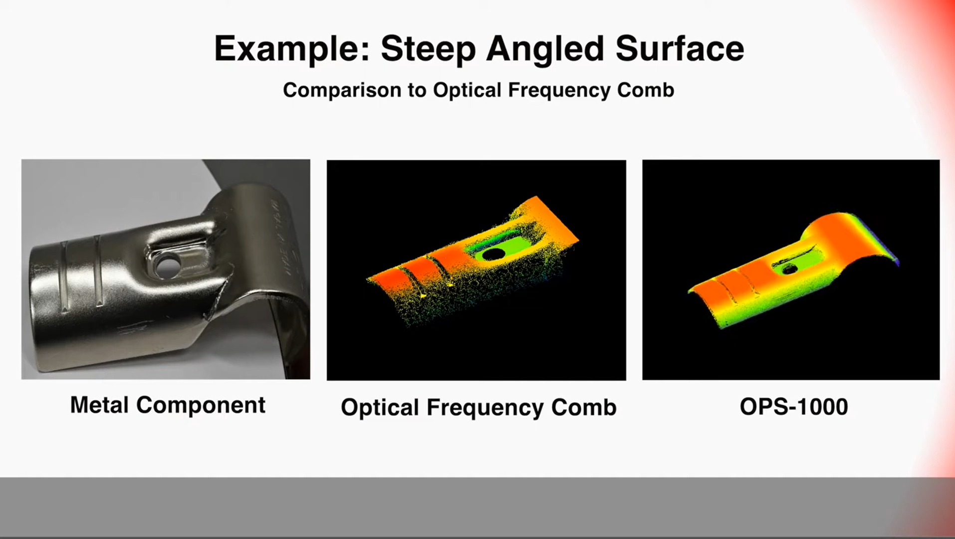 Sự khác biệt nằm ở độ nhạy và độ phân giải của đầu thu cũng như tốc độ xử lý, giúp máy có thể phát hiện các chi tiết nhỏ đến micromet hay thậm chí nano mét. Ở máy Santec OPS-1000, công nghệ interferometric mới cho phép loại bỏ nhiễu từ các điều kiện ánh sáng môi trường, giữ nguyên độ chính xác khi đo đạc ngoài thực tế nhà máy.